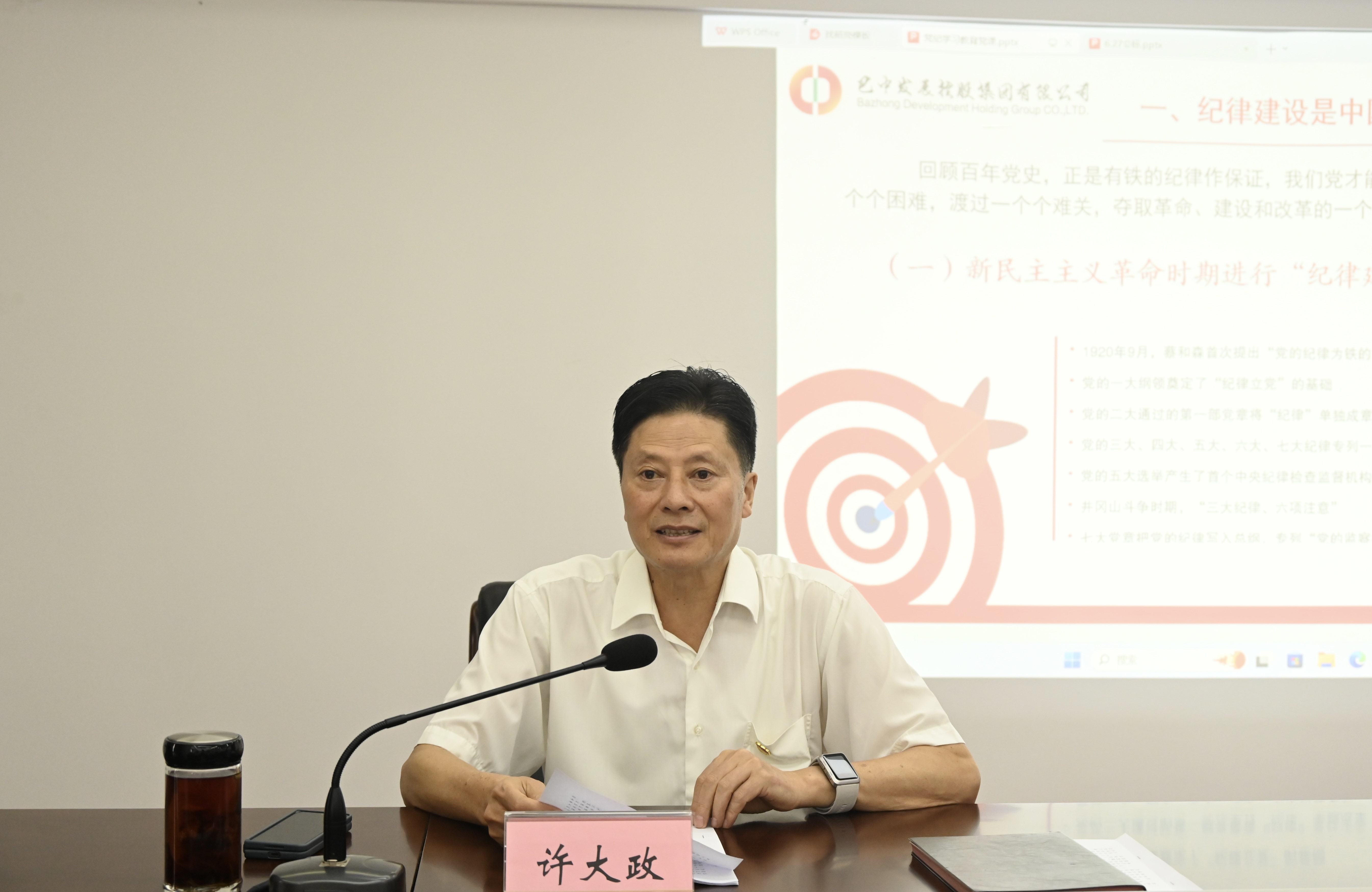 活動當(dāng)天,巴中發(fā)展控股集團有限公司黨委書記、董事長許大政以“學(xué)紀(jì)知紀(jì)明紀(jì)守紀(jì)踐行忠誠干凈擔(dān)當(dāng)”為主題,圍繞紀(jì)律建設(shè)是中國共產(chǎn)黨克敵制勝的重要法寶、充分認(rèn)清黨員干部違紀(jì)違法的嚴(yán)重危害、當(dāng)前黨員干部在遵規(guī)守紀(jì)方面存在的問題、以實際行動踐行忠誠干凈擔(dān)當(dāng)?shù)确矫妫鷦又v授了一堂黨紀(jì)學(xué)習(xí)教育專題黨課,教育引導(dǎo)全體黨員銘記黨的奮斗歷史、傳承黨的紅色基因、弘揚偉大建黨精神,真正將紀(jì)律銘記于心,使其內(nèi)化為工作生活中自覺遵循的準(zhǔn)則。