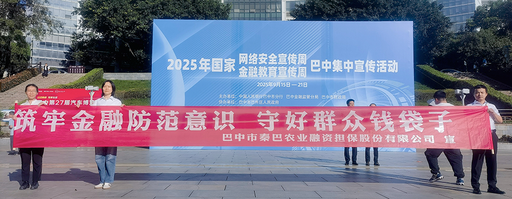 2025年國家網絡安全宣傳周/金融教育宣傳周巴中集中宣傳活動火熱開展。市秦巴農擔公司主動響應號召,圍繞“筑牢金融防范意識,守好群眾錢袋子”核心宗旨,聚焦金融領域安全,開展多形式宣傳活動,助力提升社會公眾金融風險防范意識與網絡安全認知水平。