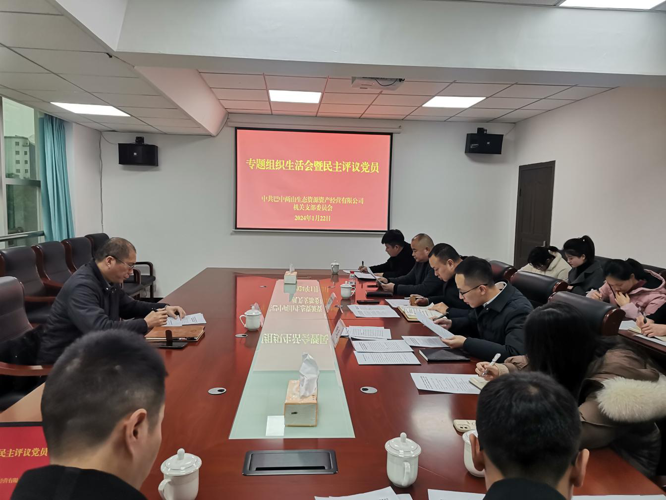 1月22日,巴中兩山公司機關黨支部召開2023年度學習貫徹習近平新時代中國特色社會主義思想主題教育專題組織生活會并開展民主評議黨員工作,集團公司黨委委員、副總經理劉仕勇到會指導并講話,公司黨總支書記、執(zhí)行董事師遠主持會議。
